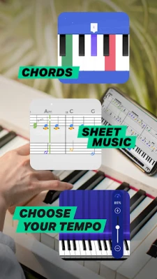• Piano By Yousician also teaches you music theory and Includes special trainers for each piano skill.