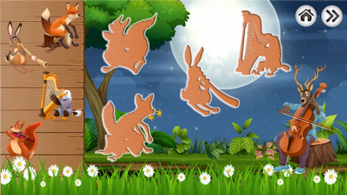- have fun collecting puzzles with animals, fish, birds and insects, hear the sounds of musical instruments: timpani, xylophone, accordion, guitar, trumpet, banjo, drum kit, maracas, tambourine, triangle, cello, bongo, harp, didgeridoo, violin, saxophone, flute, clarinet, bagpipes, balalaika, grand piano;