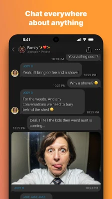 • Choose your favorite contacts, groups, or communities and seamlessly switch between them. Create your workspace, group all your friends or family members together, and chat as never before.