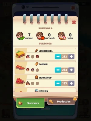 Collect Heroes: Each survivor has a unique story and predisposition to different jobs. Some of them cook food faster, others excel as lumberjacks, and some are more efficient hunters than others.