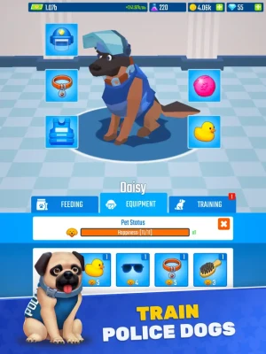 Train your police officers and develop your pets to enhance their abilities and make your department even more effective. With multiple police stations to develop and maintain, you'll need to keep a close eye on your resources and invest your idle money wisely to ensure the success of your department. But don't worry - with idle tycoon gameplay, you can still succeed even if you're not constantly playing.