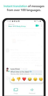 *Stop copying and pasting text into a translation app. Pronto automatically detects a message’s language and can instantly translate it from over 100 languages. Have a full, real-time text conversation without worrying about the language being spoken on the other side.