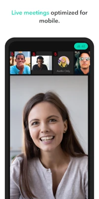 *No messy conferencing links or emails, just simply tap the camera icon in the upper right corner to connect instantly in a live video session with a single colleague or an entire group in a beautiful full-featured live meeting interface optimized for your mobile device.