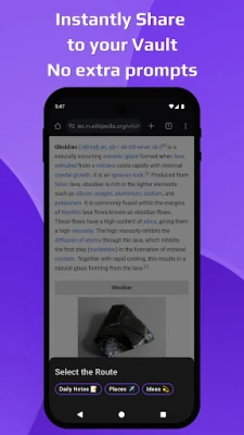 - Share any content from your phone to Obsidian with no extra prompts
