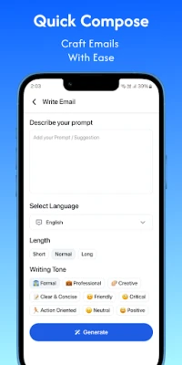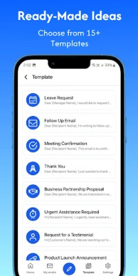 Transform your thoughts into polished, professional emails with just a few taps. Simply provide a brief prompt or choose from our extensive library of 15+ customizable templates, and watch as our advanced AI technology generates a clear, concise, and effective email in seconds.