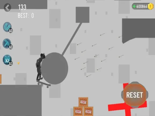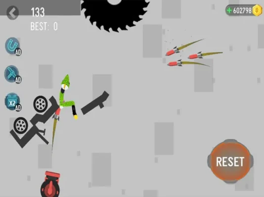 Perform stunts to face deadly traps and obstacles. Hold to increase power and push stickman off the cliff.You can choose vehicles such as cars or motorbikes to speed up the game.
