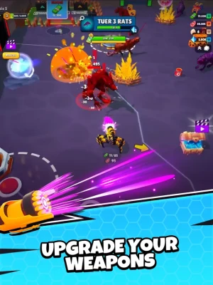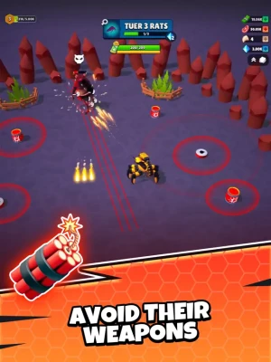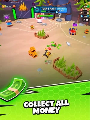 Collect & Upgrade: While on your rat-slaying adventure, gather valuable money and glittering gems. Use them to unlock new zones, buy futuristic weapons, and upgrade your trusty robot companion. Customize your robot with cool, eye-catching designs.