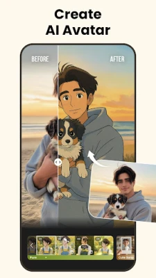 - AI cartoon effects. AI art generator will turn your photos into cartoon avatars. Various artistic cartoon effects and video templates help to make your photos look creative.