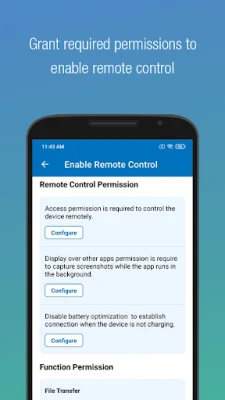 Using the Android OS accessibility API, the app grants the technician remote control access of the device with your permission. It does not collect any personal and sensitive data.