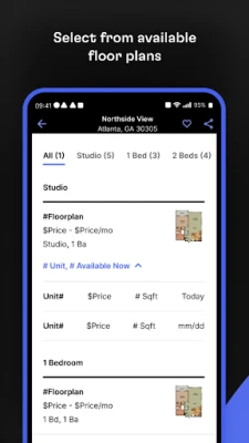 • Find apartments in specific locations using a map or text view of listings.
