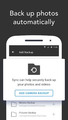 • Sync will back up photos and videos as soon as you take them.