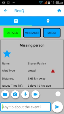 Crowd notification / sourcing is also included: missing person alerts and any crime incidents around your current location (optional: requires background location information to be sent periodically). If you have any information on a given incident you can send messages, pictures or video to our dispatchers to help with the incident.