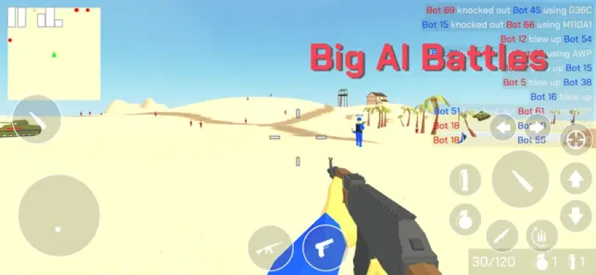 Each map has different features, and some have tanks, static machine guns, and airplanes. Play intense matches on small maps or drive vehicles around in the desert!