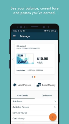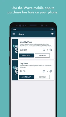 Never lose your fare product again! Once you load money into your Wave account, it will always be available to use. Need to replace your phone? No problem -- we can easily transfer your balance.