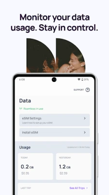 • Try Roamless for free. Download now and get $1.25 free credits for the free eSIM trial.