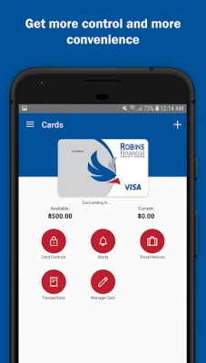 For the Robins Financial Cards App, you will create a new username and password. Use this app in conjunction with Robins Financial Credit Union app to get the most benefit out of your card.