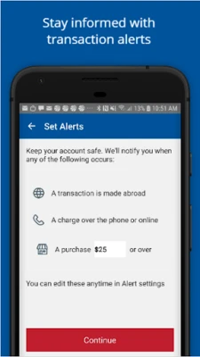 • push notification or email alerts about various card activity • card controls • travel notifications • balances • transaction history • and more!
