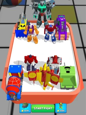 Super Robot Car Merge Master is an attractive and addictive real-time strategy game for everyone. The main goal is to beat all the enemies by combining your monsters to grow from the simple. Combine quickly and actively attack enemies to gain control of enemy positions and possess greater power than the opponent. At the same time, use your strategy and tactics to win the battle and move on to the next level.