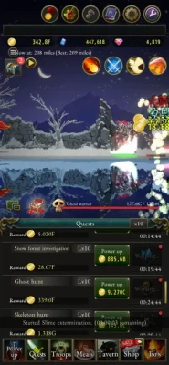 Completing quests and killing monsters will earn you coins that you can use to make your troops stronger.
