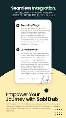 Sabi Dub is not just an app—it's a comprehensive solution for students in Nigeria. Offering both academic and career-related resources, the app ensures that students have access to personalized, up-to-date information, while keeping them connected with a community of learners, mentors, and educators. With Sabi Dub, students can face challenges confidently, knowing they have all the tools they need to succeed.