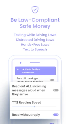 Despite being behind the wheel, you can stay connected. The app reads incoming messages aloud using TTS.
