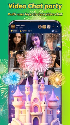 Chat - Chat directly with friends from all over the world in the Voice Party Room or Video Party Room.