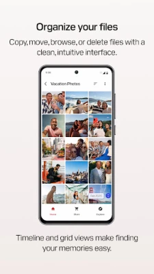 Media Timeline & Grid Views: Navigate your photos and videos in a timeline or immersive grid layout to quickly find and relive your memories.