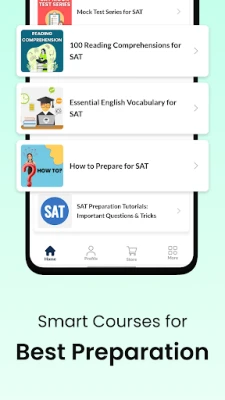 "SAT Practice Test & Exam Prep" App provides preparation study material, Short Notes of all subjects, Question BANK, Practice tests, previous year papers Online Tests, Topic Wise Tests, Daily insights, English vocabulary, Previous year question papers and Important tips & tricks.