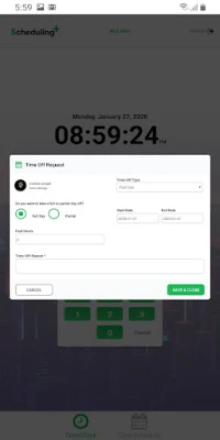 Request Time Off Managing time off requests has never been easier. Employees can quickly create and check the status of their time off requests. These can then be reviewed by management from the Scheduling+ Dashboard.