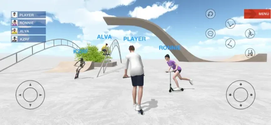 Game of Scooter.Enjoy battles and chats in multiplayer mode.One park per person is given. It is freely customizable.Parks created by someone continue to be released one after another.