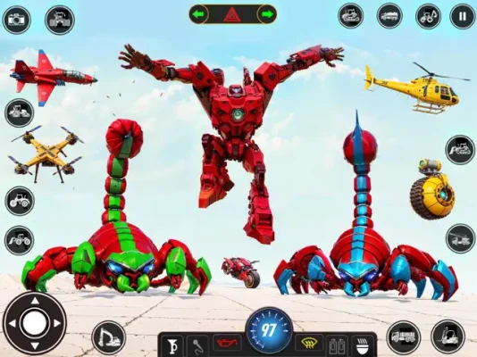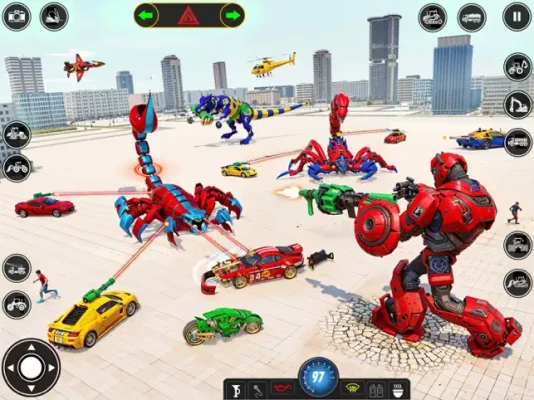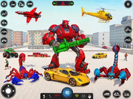 Welcome to scorpion robot game where you can enjoy transformable scorpion into robot, car bike, fighter plane and helicopters. Shoot down all the enemy robots and completely clear the city form evil of robot mafia. Robots are spreading terror in the city and in this situation management need a tiny creature like scorpion to infiltrate the highly robot populated areas and then transform to giant vehicles or robots and fight these robots to bring about peace in the city.