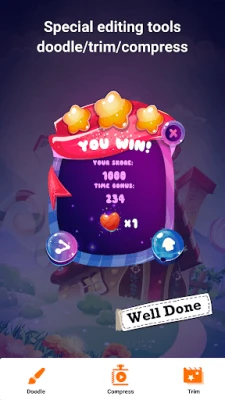 - Simple interface, record game, video calls, live shows, films or sport events. You can also edit the video you record. Doodle anything you want, trim or compress video with simple steps. You can even convert your video into mp3.