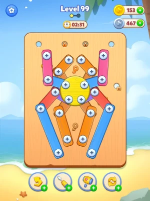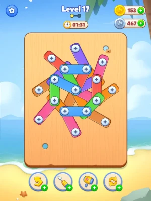 Welcome to Screw Puzzle! The perfect puzzles and brainteasers bolts game!Are you ready to unscrew your mind and twist your perception to become a good brainteasers in our bolts game? Dive into the captivating world of Screw Puzzle, the innovative nuts and bolts screw puzzle game that will challenge your spatial reasoning and problem-solving skills like never before from unscrew puzzle!Screw Puzzle offers a unique and addictive nuts and bolts gameplay experience that's easy to learn but difficult to master in bolts game. Your mission? Remove all the nuts and bolts screw puzzle from the board by strategically moving them to empty holes at unscrew puzzle. Sounds simple, right? Think again!Key Features of Screw Puzzle Bolts Game:1. Intuitive Gameplay of Screw Jam: Simply tap on nuts and bolts and move them to an empty hole to remove it from the board. The straightforward mechanics allow bolts game players of all ages to jump right in and start solving puzzles immediately in unscrew puzzle.2. Progressive Difficulty of Bolts Puzzle Adventure: Experience a smooth learning curve as you advance through 2-3 rounds per Screw Jam level. Start with easier nuts and bolts screw puzzle to get the hang of the game, then gradually face more intricate challenges that will truly put your Screw Jam problem-solving skills to the test in our bolts game.3. Beautiful Screw Jam Visuals: Immerse yourself in a world of stunning Screw Jam graphics and meticulously designed puzzles. Each level features exquisite artwork that serves as both a treat for the eyes and a clever disguise for the complex puzzles that lie beneath.4. Exciting Rewards: As you solve screws nuts and bolts, you'll unlock exciting rewards that add an extra layer of motivation to your unscrew puzzle.5. Hundreds of Screw Jam Levels: With a vast array to solve, Screw Jam offers hours upon hours of brain-teasing bolts game entertainment. You'll never run out of challenges to conquer in unscrew puzzle!6. No Time Pressure of Screw Jam: Take your time to analyze each puzzle and plan your moves carefully. Screw Puzzle is all about strategic thinking, not rushed decisions.Ready to put your problem-solving skills to the ultimate test in screws nuts and bolts? Download Screw Puzzle now and start unscrewing your way to puzzle-solving greatness in unscrew puzzle! Remember, in the world of Screw Jam, every twist and turn brings you closer to becoming a true screw game master. Can you unravel all the mysteries that await?Don't let your brain get rusty – give it a good workout with Screw Puzzle today!