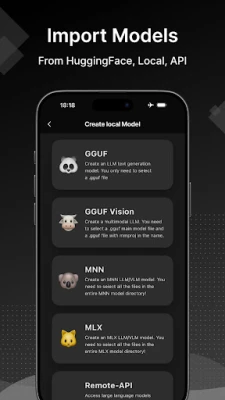 Access leading open-source models like Gemma 3n, Llama 4, DeepSeek R1 0528, Qwen 3, Phi 4, Mistral 3.2, and other advanced local AI models - download directly from Hugging Face for enhanced offline AI chat experiences. Enjoy private AI conversations with full model capabilities.