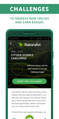 • Earn badges for observing different types of species and participating in challenges