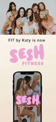 FIT by Katy is now Sesh Fitness App! As always, we provide a sustainable approach to exercise & nutrition to deliver a healthier lifestyle that you can maintain. With hundreds of exercise videos, personalized macro goals, thousands of community members & the ability to track your progress…you’ll get in shape, & stay in shape, for life. Start with our free 2-week program, just by downloading the app!