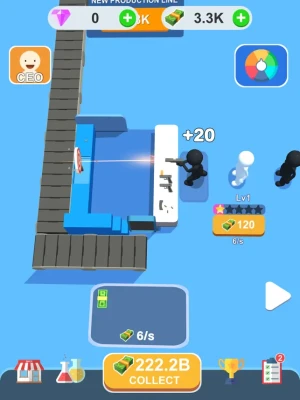 Start with the first shooting target. Attract guests to experience shooting. You can get benefits from it. Upgrade the shooting target with income to give guests a better experience. Then you can buy some new targets to expand your shop. Continuous expansion until you become a shooting field tycoon.