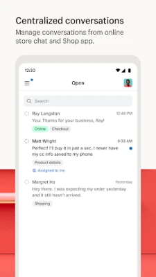 • Save time managing customer conversations from online store chat and the Shop app