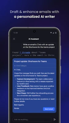 Write personalized emails with AI in seconds, or use instant AI replies to get full drafts in just one tap. Shortwave learns your unique writing style and even facts about you from the emails you send.