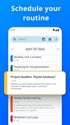 Discover the ultimate schedule planner! This app isn’t just a calendar - it's your all-in-one appointment scheduler and family organizer. Viewing your upcoming events is simple, whether you prefer a full monthly view or a concise list of daily activities. Setting up reminders ensures you'll always be punctual and prepared for the day's appointments. Simple calendar for all your needs.