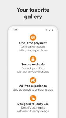 Rest assured your photo album is safe. With Simple Gallery's superior security features you can use a pin, pattern or your device’s fingerprint scanner to limit who can view or edit selected photos and videos or access important files. You can even protect the app itself or place locks on specific functions of the file organizer.