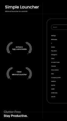 Simple Launcher β Minimalist is designed for anyone who values focus, clean design, and customization. Unlike overloaded Android launchers, this one is distraction-free, lightweight, and minimal while giving full control to personalize themes, colors, fonts, and widgets. Perfect for productivity lovers, students, professionals, gamers, and minimalism enthusiasts.