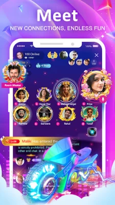 - PK Challenges: Support your favorite streamers by voting or sending gifts in PK challenges, and watch them shine in the Spotlight with dance, Bollywood music, cricket discussions, and more.