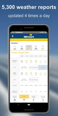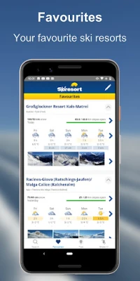 • Save your favourite ski resorts: quickly access snow reports, weather and webcams