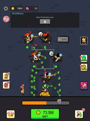 You have a weapons factory, all you need to do is get them to build as many weapons as possible.Starting from a small forging table, weapons are shipped and sold, and gold coins are loaded into treasure chests. Upgrade with gold. The higher the grade, the faster it can be built and the higher the price. Open a new production line, ship and sell your weapons, and fill your gold chests!
