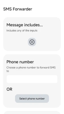 App for checking SMS messages and forwarding/sending SMS with user entered text to selected contacts.