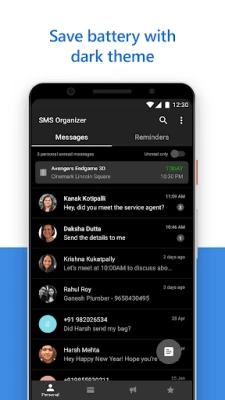 SMS Organizer, a Microsoft Garage project, is the smartest of all SMS apps. It automatically organizes your inbox, sets reminders and keeps track of them, all this magic happens on your device safely, without any of your personal data being uploaded anywhere online. Never miss anything important—switch to SMS Organizer as your default SMS app to experience it now!