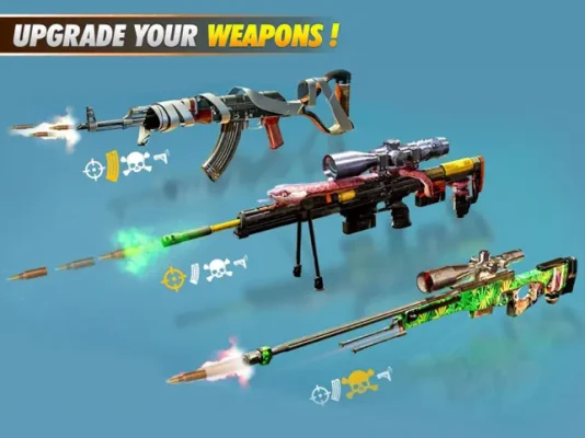 Explore gun shooting games store and choose your weapons from a variety of options including sniper rifles, assault rifles, AK47s, shotguns and hand grenades. Timely upgrade your weapons and gear to become a strong surviving sniper 3D shooter and confront more dangerous enemies.