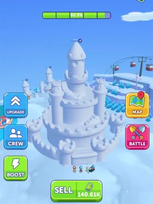 From towering spires to intricate snow sculptures, every tap brings your fortress closer to perfection. The bigger your creation, the greater the rewards! Sell your masterpiece for snow dollars and reinvest to build the ultimate winter wonderland.