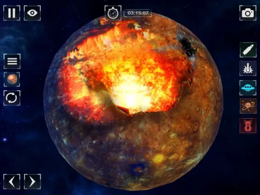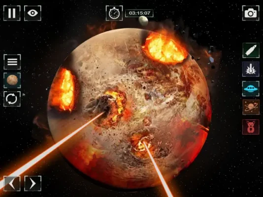 Be ready to take an adventurous trip to space with the Destroy World Destruction Game. This thriller will take you to another level of space where you can attack the planets. There are certain weapons that you can use in order to destroy the planets in space. Take a flight to the solar system and use technique of your choice to demolish the planet.